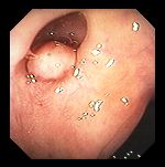 Маленький полип в дивертикуле. Полип был иссечен без кровотечения и без перфорации. Гистология - трубчатая аденома.